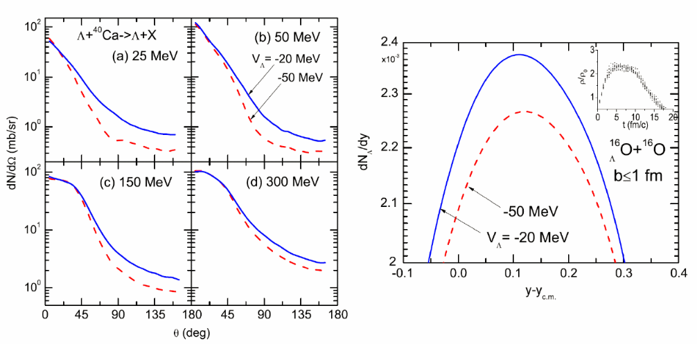 研究人員還基于考慮平均場的核內(nèi)級聯(lián)模型及熱剩余退激模型,率先提出利用超子、超核次級束流來研究超子-核子相互作用及高重子密度下的超子勢,通過測量反應(yīng)中發(fā)射的超子提取常密、高密核物質(zhì)中的超子勢。這種探測研究超子勢的方法最大限度地減少了各種理論的不確定性。此外,研究還討論了相關(guān)實驗的可行性。