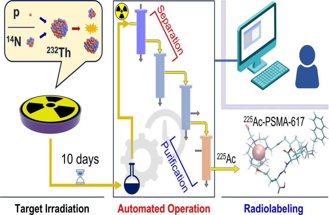 鐳-223(半衰期為11.4天)和錒-225(半衰期為10天)作為兩種極具潛力的阿爾法發(fā)射同位素,由于其獨特的物理化學(xué)性質(zhì),在小體積腫瘤和多位點轉(zhuǎn)移性癌癥的治療中展現(xiàn)出廣泛的應(yīng)用前景。然而,傳統(tǒng)的鐳-223和錒-225生產(chǎn)方法復(fù)雜且效率不高,難以滿足日益增長的需求,迫切需要開發(fā)出一種高效且自動化的制備系統(tǒng)。