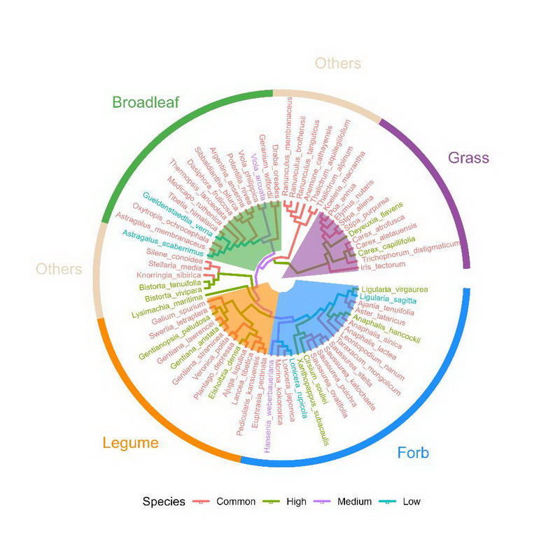高寒草甸植物群落系統(tǒng)發(fā)育樹(shù)