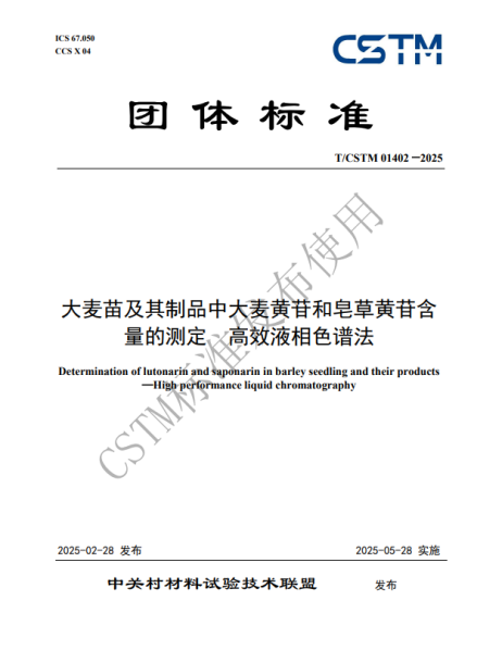 2025年2月28日,由中國科學院西北高原生物研究所、青海省藥品檢驗檢測院、西寧海關技術中心和青海金麥杞生物科技有限公司聯合完成的中國材料與試驗團體標準委員會(CSTM)團體標準《大麥苗及其制品中大麥黃苷和皂草黃苷含量的測定 高效液相色譜法》(T/CSTM 01402—2025)正式發(fā)布。該標準為基于大麥苗(青稞苗)的大健康產品的質量控制和技術創(chuàng)新提供了科學依據和規(guī)范化指導。標準詳細規(guī)定了使用高效液相色譜法測定大麥苗及其制品中活性成分大麥黃苷和皂草黃苷含量的方法,包括樣品的前處理、色譜條件的優(yōu)化、校準曲線的繪制、數據的處理、以及測量不確定度的評估等關鍵環(huán)節(jié)。標準還特別強調了在實際檢測中應根據樣品的特性進行個性化的調整和優(yōu)化,以確保檢測結果的準確性和可靠性。此外,標準還提供了詳細的試驗報告模板,包括識別樣品、實驗室和試驗日期所需的全部信息,以及引用標準、結果表示和異常現象記錄等內容,為檢測結果的完整性和可追溯性提供了有力保障。