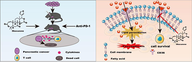 胰腺癌是一種惡性程度極高的消化系統腫瘤,五年生存率不足10%,目前缺乏有效的臨床治療措施,嚴重影響人類生命健康。近期,研究團隊發(fā)現黃柏酮能顯著增強抗PD-1免疫療法治療胰腺癌的效果,增加腫瘤組織中免疫標志物CD4+和CD8+T細胞的浸潤而抑制腫瘤生長,蛋白質組學分析發(fā)現黃柏酮主要通過調控CD36介導的PPAR信號通路,抑制胰腺癌PANC-1細胞CD36表達,增加CD8+ T細胞數量,促進胰腺癌細胞凋亡,從而抑制胰腺癌細胞生長。相關研究成果發(fā)表在European Journal of Pharmacology(994 (2025) 177367)上。