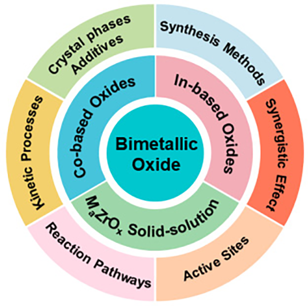 隨著化石燃料的逐漸耗盡,其燃燒產(chǎn)生的大量二氧化碳排放帶來(lái)了嚴(yán)峻環(huán)境問(wèn)題,能源與環(huán)境雙重挑戰(zhàn)日益凸顯,已對(duì)人類(lèi)生存構(gòu)成嚴(yán)重威脅。在此背景下,通過(guò)碳捕獲與利用(CCU)的過(guò)程來(lái)減少二氧化碳排放成為當(dāng)前研究的重點(diǎn)方向。將二氧化碳作為化學(xué)生產(chǎn)的非傳統(tǒng)且可持續(xù)的碳源加以利用,可減少對(duì)石油等化石燃料的依賴,并妥善解決碳排放問(wèn)題。在眾多的加氫產(chǎn)物中,甲醇是被受青睞的選擇。由于其出色的催化性能和穩(wěn)定性,雙金屬氧化物催化劑已成為該領(lǐng)域最具前景的研究課題。