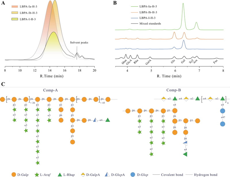 研究結(jié)果以?Dual-configuration arabinogalactan-II synergizes with rhamnogalacturonan-I in Lycium barbarum pectin to construct an intestinal anti-inflammatory glycan scaffold?為題,于2026年1月11日在糖化學(xué)期刊?Carbohydrate Polymers(中國(guó)科學(xué)院化學(xué)一區(qū)TOP期刊,IF 12.5)在線發(fā)表。西北高原所碩士研究生李國(guó)強(qiáng)為論文第一作者,博士研究生喬亞俊、碩士研究生王倩楠為共同第一作者,西北高原所畢宏濤研究員、魏立新研究員和成都醫(yī)學(xué)院高婷婷教授為共同通訊作者。該工作得到了國(guó)家自然科學(xué)基金(82171863)、中央財(cái)政引導(dǎo)地方科技發(fā)展專項(xiàng)資金(2025ZY010)和四川天府峨眉計(jì)劃等項(xiàng)目的資助。