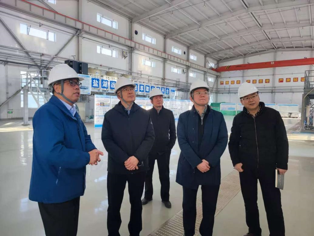 11月23日上午,中國鹽湖集團(tuán)黨委書記、董事長薛飛,總工程師陳宋璇一行,前往青海鹽湖所甘河中試基地開展實地調(diào)研。副所長馮海濤陪同調(diào)研。