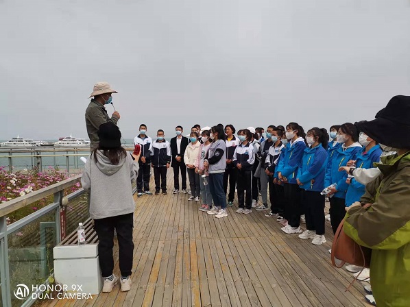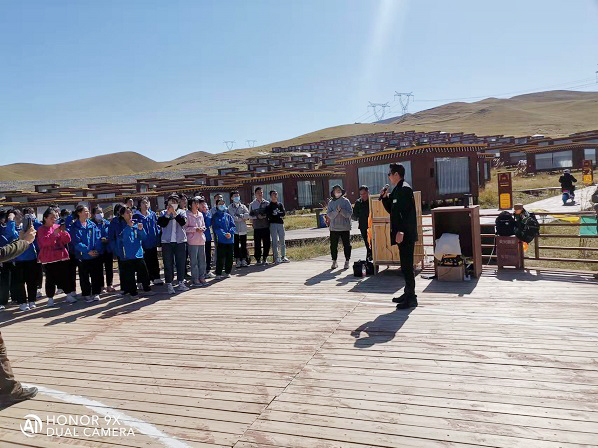 在為期兩天的行程中,同學(xué)們先后參觀了青海湖和海北原子城紀(jì)念館,在老師的指導(dǎo)下學(xué)習(xí)如何樹立自信心,增強(qiáng)合作意識(shí),了解與青藏高原相關(guān)的地質(zhì)地理知識(shí),感受兩彈一星老科學(xué)家們無私奉獻(xiàn)和創(chuàng)新報(bào)國的精神等。此外,大家還分組團(tuán)隊(duì)合作自己設(shè)計(jì)團(tuán)隊(duì)游戲,展示個(gè)人才藝,氣氛融洽而熱烈。尤其是在展示個(gè)人才藝環(huán)節(jié)還發(fā)生了一個(gè)有趣而暖心的小插曲,同學(xué)們的歌舞表演不僅吸引了周圍游客的關(guān)注,也引起了一位從四川九寨溝遠(yuǎn)道而來的藏族歌手的注意,這位歌手被同學(xué)們的表演所感染,用他特有的嗓音欣然為同學(xué)們演唱了他自己原創(chuàng)的歌曲,并鼓勵(lì)同學(xué)們努力學(xué)習(xí),成為對(duì)國家對(duì)社會(huì)有用的人才。