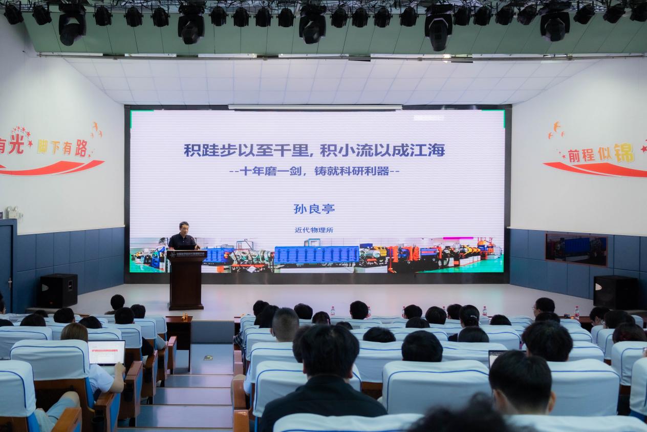 為深入貫徹落實習(xí)近平總書記關(guān)于弘揚科學(xué)家精神和加強作風(fēng)學(xué)風(fēng)建設(shè)工作的重要指示精神,5月28日,中國科學(xué)院近代物理研究所開展“科學(xué)道德與學(xué)風(fēng)建設(shè)”主題日活動,邀請近代物理所黨委委員、低能粒子束技術(shù)中心主任孫良亭研究員作《積跬步以至千里,積小流以成江?!昴ヒ粍?,鑄就科研利器》主題報告。此次活動共100余位研究生參加,近代物理所紀委書記宋華龍出席,教育處副處長魏巍主持。