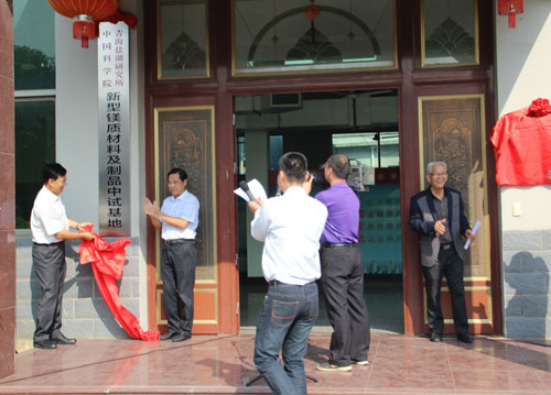 張金初、段東平、支洋波和肖學(xué)英代表雙方進(jìn)行了“新型鎂質(zhì)膠凝材料工程技術(shù)聯(lián)合研究中心”和“新型鎂質(zhì)材料及制品中試基地”的揭牌。揭牌儀式結(jié)束后,來(lái)賓參觀了板材生產(chǎn)線和新型海工鎂水泥試驗(yàn)場(chǎng)地。