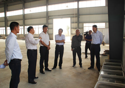參觀板材生產(chǎn)線和新型海工鎂水泥試驗(yàn)場(chǎng)地